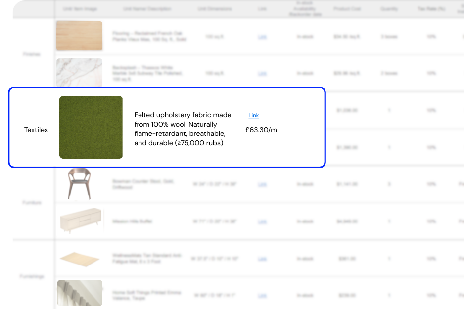 We’re currently able to scan the market for tiles, flooring, textiles, acoustic panels, paints and wallcoverings. If your spec is outside any of these categories, please tell us and we will let you when we’re able to start supporting it.